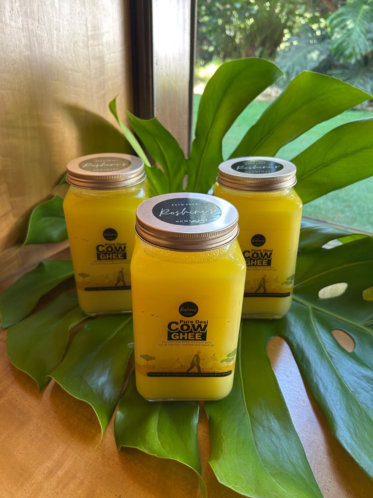 Rich in Omega-3 fatty acids and CLA (Conjugated Linoleic Acid), Roshini’s Homemade Ghee is a natural source of good fats that support immunity, strength, and overall well-being.